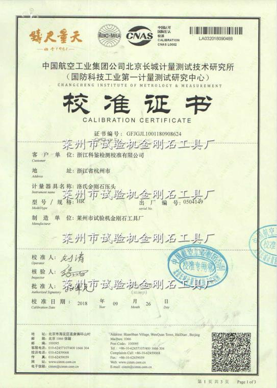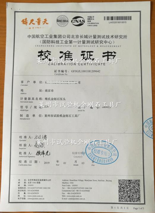 若您需要带第三方证书的金刚石压头,请致电我厂官方电话:05353-2215886。联系人:滕经理 刘经理。
